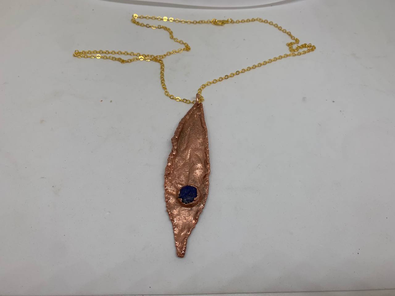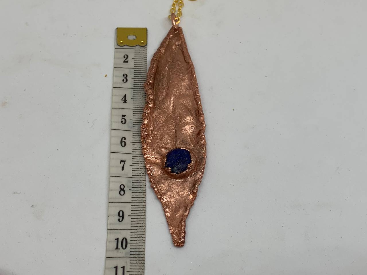 Ciondolo Elettroformato in Rame con Lapislazzuli Naturale e Foglia di Alloro - Pezzo Unico Fatto a Mano